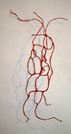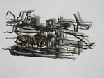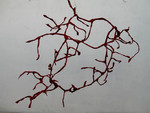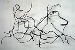 Carien Engelhard (1949)drukt zich uit in tekeningen en sculpturen en op het grensvlak tussen deze twee. Momenteel maakt zij papiersnedes: dat zijn tekeningen waar ruimten in gesneden zijn en die op een afstandje van de muur hangen zodat het licht door de tekening heen op de achterwand schaduwen kan vormen. Geïnspireerd op vormen uit de natuur als verdroogde bladeren, wortels of stenen maakt zij van verschillende materialen vormen die -aan de wand hangend -de ruimte in komen.