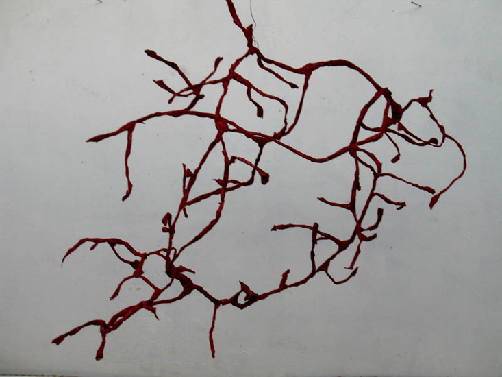 inspiratie was een takkenbos, Nu zweeft het vrij in de ruimte met een diep fluwelen kleur rood