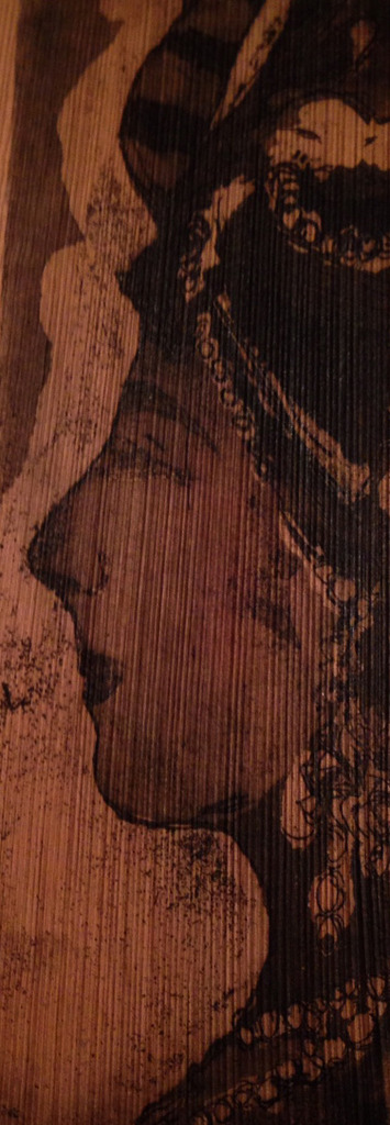 Lijnets/ aquatint, gedrukt op palmblad