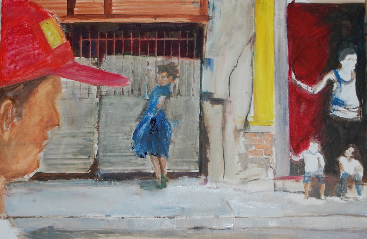 Mijn naam is Catherine Noë. Zo'n 10 jaar geleden ben ik begonnen met schilderen. Ik schilder wat me raakt, op de meeste doeken komen mensen voor of straatbeelden. Ze wekken bij mij nieuwsgierigheid op, wat is er allemaal gebeurd in deze straat, wie is deze persoon, waar gaat hij naar toe, heeft hij een gezin, een spannend leven, een geliefde...? Los van het beeld vind ik kleurgebruik belangrijk, ik doe dat intuïtief daarmee creëer ik een meer sprekend doek.