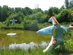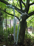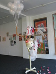 We can bomb the World to pieces, but we can’t bomb it in to peace. De toeschouwer mag zelf het mechanisme aandraaien. Zo draaien het soldaatje en vredesduifje om elkaar heen.