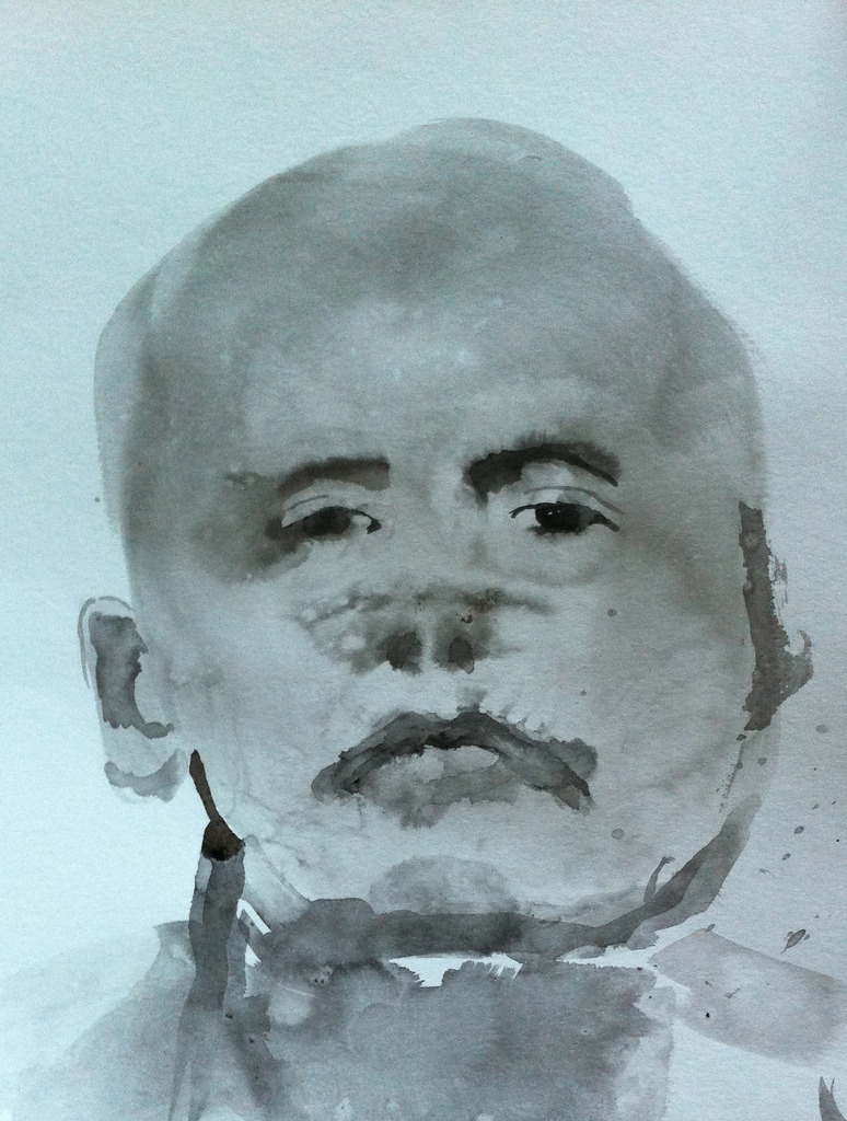 De inkt heb ik hier laten lopen en af en toe ingegrepen om tot een portret te komen. Afgebeeld is een Rus die in Engeland vergiftigd is omdat men dacht dat hij een spion was, of hij dat was weet ik niet.