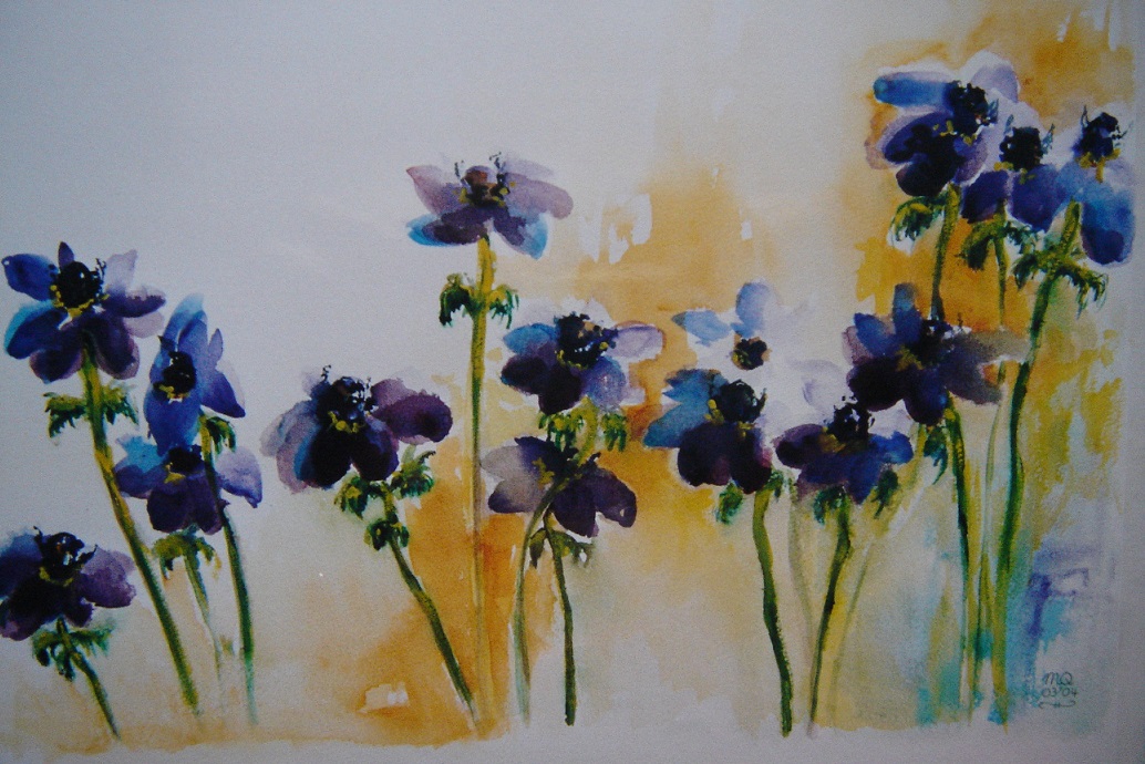 Aquarel, anemonen geschilderd op aquarelpapier 50x70 cm. Eventueel ook ingelijst met passepartout te koop.