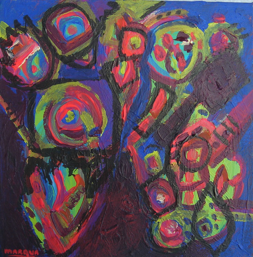 Bloemachtigen blauw rose, geschilderd in acrylverf op "3-d" doek 20x20x4 cm. Kan evenueel als tweeluik worden gecombineerd met MARQUA313