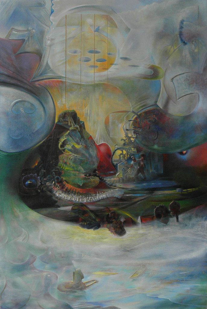Uitgangspunt bij het maken van dit schilderij was de idee van het 'bezielen' van de materie.