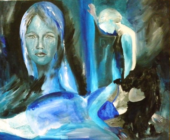 Als ik bezig ben met kunst (schilderen, tekenen en boetseren) dan komt alles in mij tot leven. De kleuren en vormen, elk vertellen ze hun eigen verhaal. Ik word één met de kleuren, de bewegingen, de vormen en voel mij verbonden met de wereld en met mijzelf. Ik werk vanuit mijn gevoel verbonden met de 'oerbron'