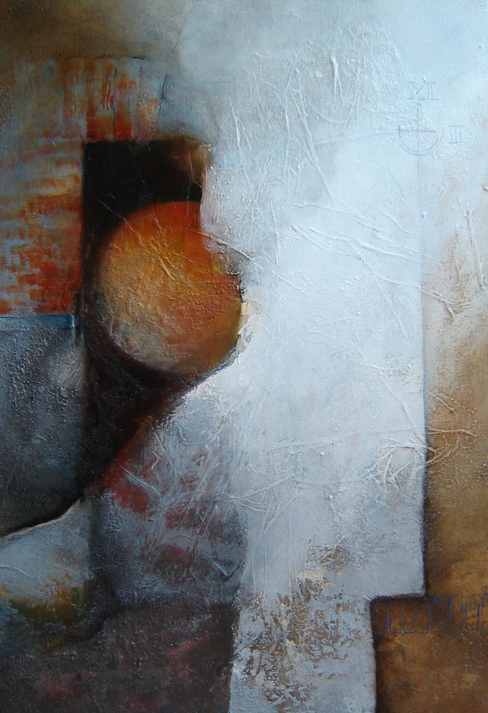 Marly Freij maakt grote kleurrijke, maar ook meer ingetogen schilderijen in gemengde techniek, met name sferische landschappen en abstracte composities