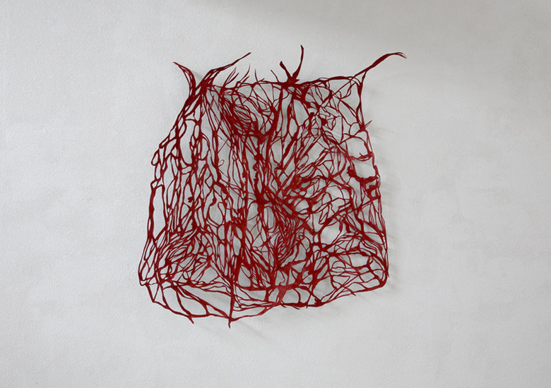 Carien Engelhard (1949)drukt zich uit in tekeningen en sculpturen en op het grensvlak tussen deze twee. Momenteel maakt zij papiersnedes: dat zijn tekeningen waar ruimten in gesneden zijn en die op een afstandje van de muur hangen zodat het licht door de tekening heen op de achterwand schaduwen kan vormen. Geïnspireerd op vormen uit de natuur als verdroogde bladeren, wortels of stenen maakt zij van verschillende materialen vormen die -aan de wand hangend -de ruimte in komen.