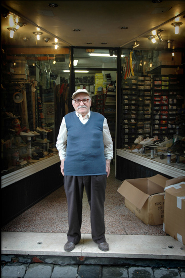 Portret Man Trots Schoenen Dozen Kleur Italie Sociaal Opa Documentair Winkel Verkoper Winkelstraat Journalistiek Etalage Genua