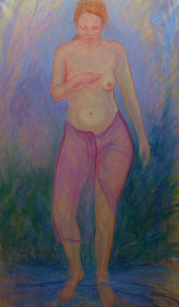 Zwangere vrouw, schilderij olieverf op linnen, 90 x 150. Niet te koop wel schilderij in opdracht mogelijk.