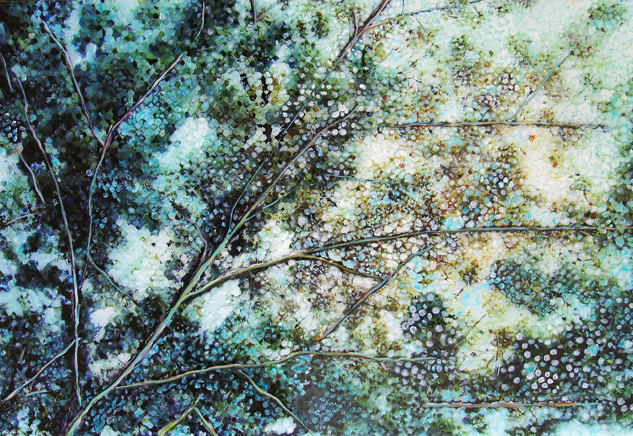 Print op acrylglas, beschilderd met olieverf, krijt en vernis | 80 x 120cm |