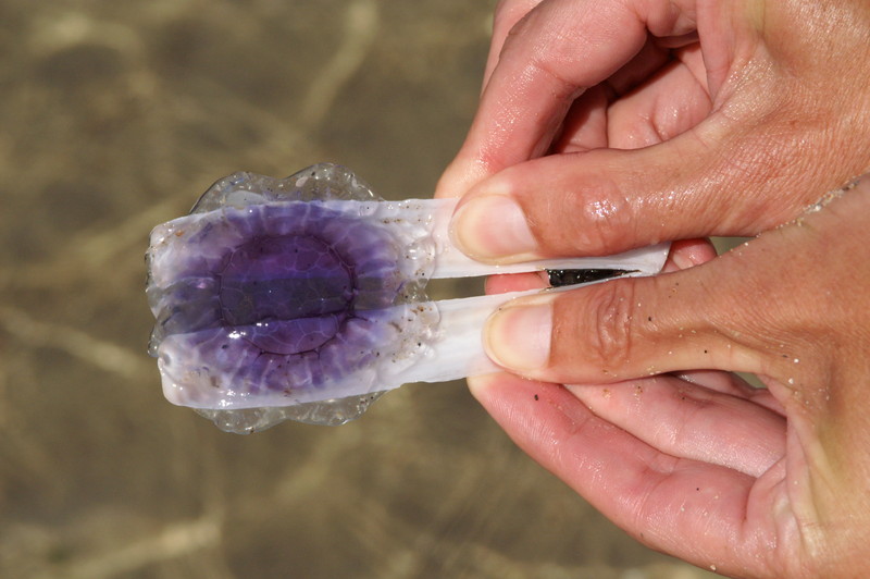 Een kwal opgepakt met twee lemmetschelpen