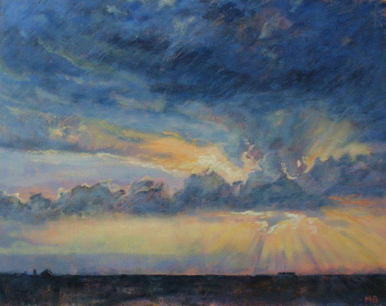 Geel Landschap Blauw Wolken Olieverf Lucht Huizen Oost Groningen Donkere Landschapsschilderij Zondoorbraak