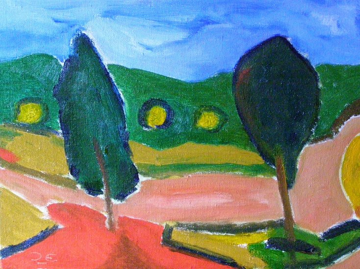 Ik schilder bij voorkeur afwisselend in een gematigde trant impressionistische,expressionistische en fauvistische landschappen.Die ontstaan meestal tijdens reizen,of later in het atelier. Kleur is een belangrijk expressiemiddel, maar ook spontaniteit speelt een belangrijke rol.