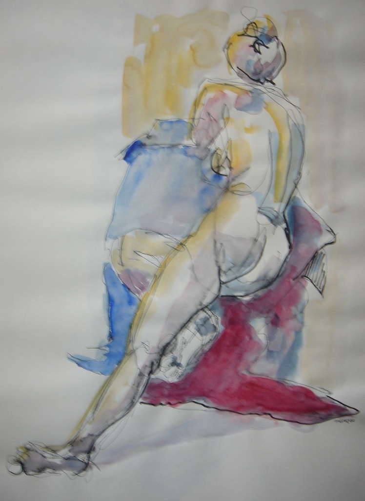 Rood Geel Blauw Paars Vrouw Model Tekening Roze Naar Aquarelverf Levend Naakte Tekenpen Marion Janssen Quaadvliet