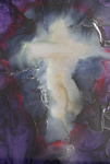 hier zijn meerdere technieken gebruikt zo is het kruis geblazen en de omgeving via een rubberen scalpel afgewerkt