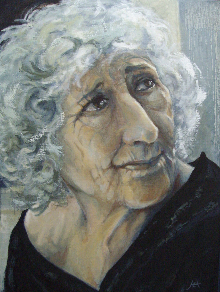 Prachtige, oude dame, die op een terras in Antwerpen opviel door haar geweldige uitstraling.
