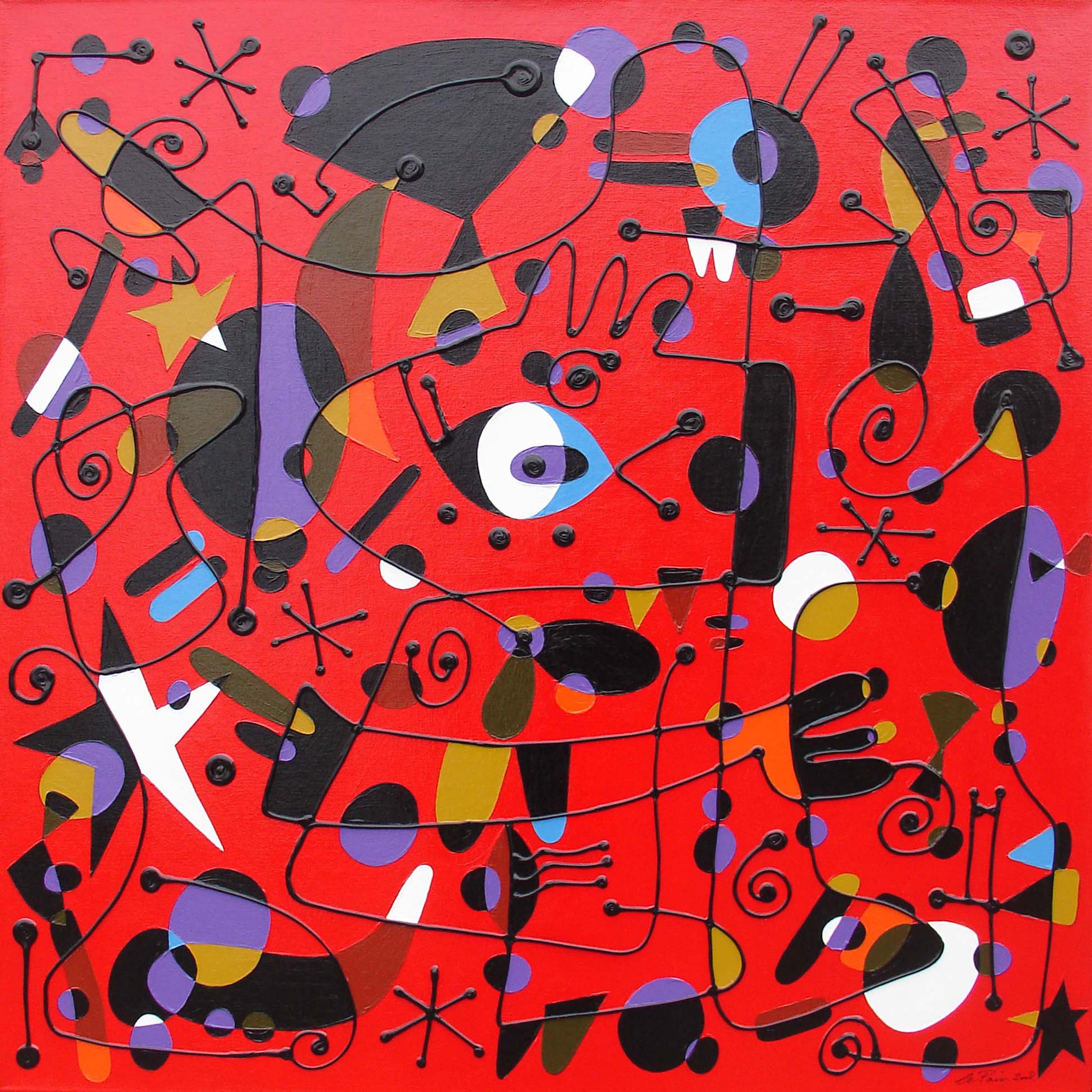 Kunst Origineel Kleurrijk Relief Miro Abstract Kunstenaar