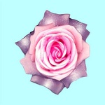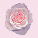 scans van bloemen die op de computer bewerkt zijn: de geïsoleerde bloemen krijgen een steviger stofuitdrukking en extra glans. Afgedrukt tegen een pastelkleurige achtergrond.