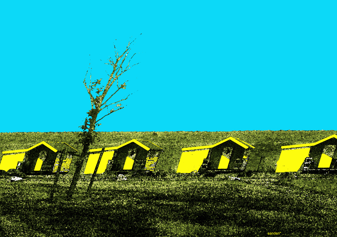 Dijk met daarvoor zomerhuisjes, bewerkte foto