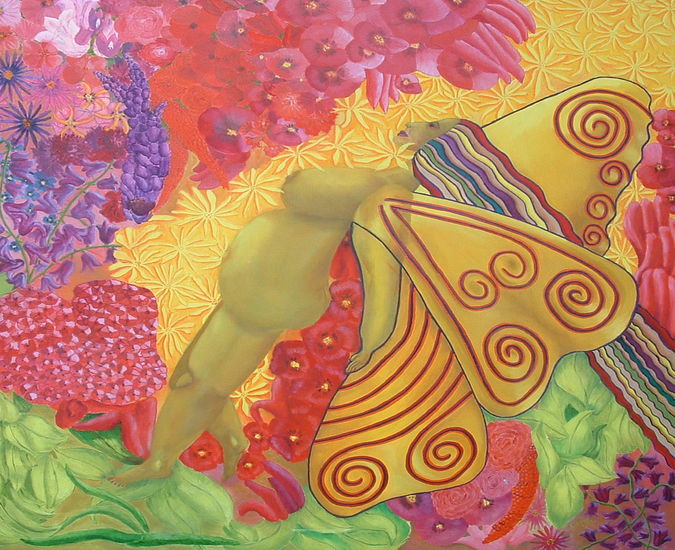 Vlinder Bloemen Tuin Ziel Godin Malta Cirkels Vrouw Olieverf Surreeel