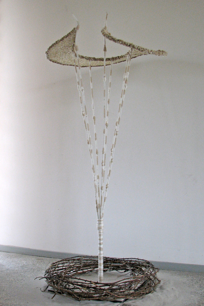 DE VERRIJZENIS symboliseert Pasen. De opstanding, door de pijn naar het licht! De "Verrijzenis" is gemaakt in de lengte van een mens.. wij kunnen ons ook zo voelen. Gemaakt met katjes en judaspenning. Spiegelingen en zachtheden.