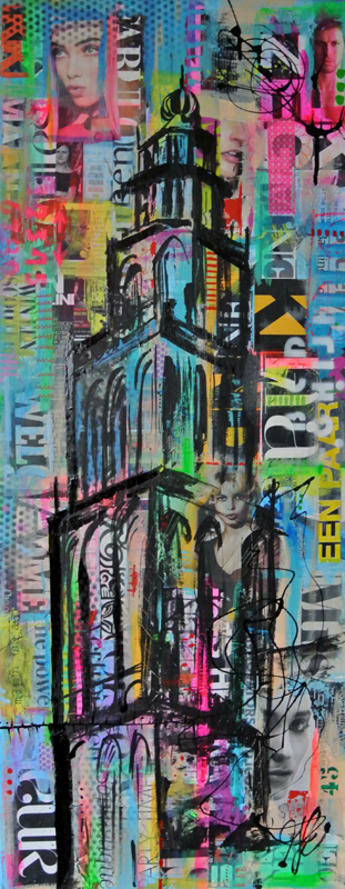 Schilderij Modern Rood Geel Zwart Blauw Mixed Media Roze Letters Kleur Groningen Neon Hip Martinitoren Grunn