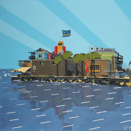 Fokko van der Woude (1975) schildert typografisch en abstract in acryl. Veel primair kleurgebruik en vaak op formaat 110 x 110 cm.