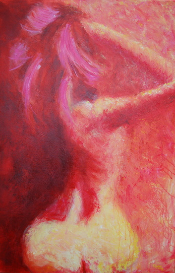 Vrouw Rug Realistisch Ongekleed Acryl Schilderkunst Roze Naakt