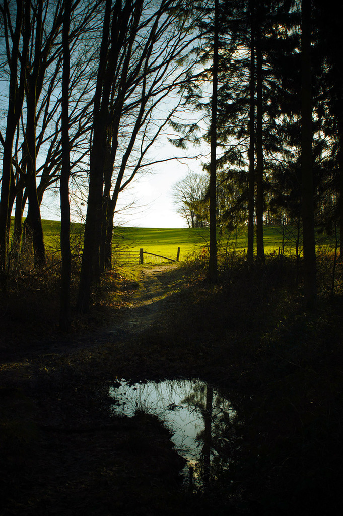 Blauw Groen Bomen Donker Bos Weg Hek Spiegeling Rust Verlaten Vijver Plas Begin Open Stil Pad Wei Einde Watertje Bosrand Paadje
