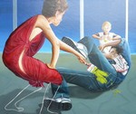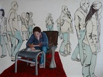 Deel 2 uit een serie schilderijen over drankmisbruik. Drinkende persoon.