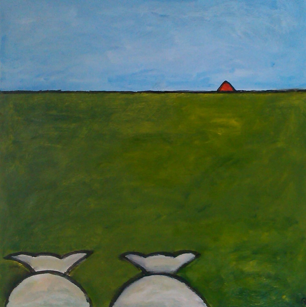 Samen zoeken naar de basis, daar waar het vuur brandt. Een Texels plaatje, met enige diepgang. 82 x 82 cm. VERKOCHT.