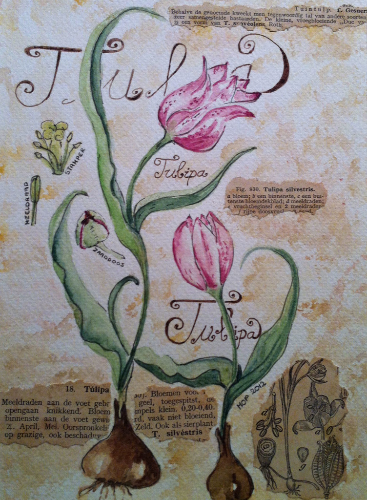 Tulp Aqarel Botanisch Madeleine Mop Scrap Tulipa Flowers&arts