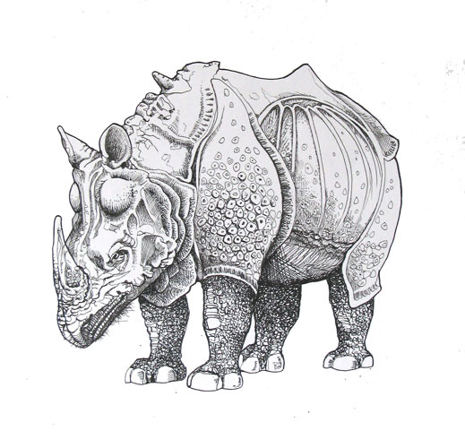 Rhino illustratie voor Bread and Butter,Barcelona zomer 2008