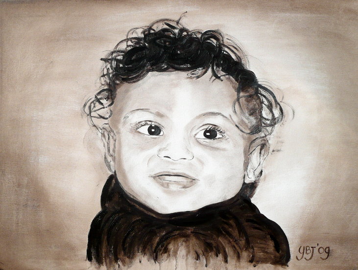 Kind Portret Sepia Kinderportret Portretvanjekind Portrait Acryl Verf Geschilderd Child Kinderkopje Portretje Dierbare