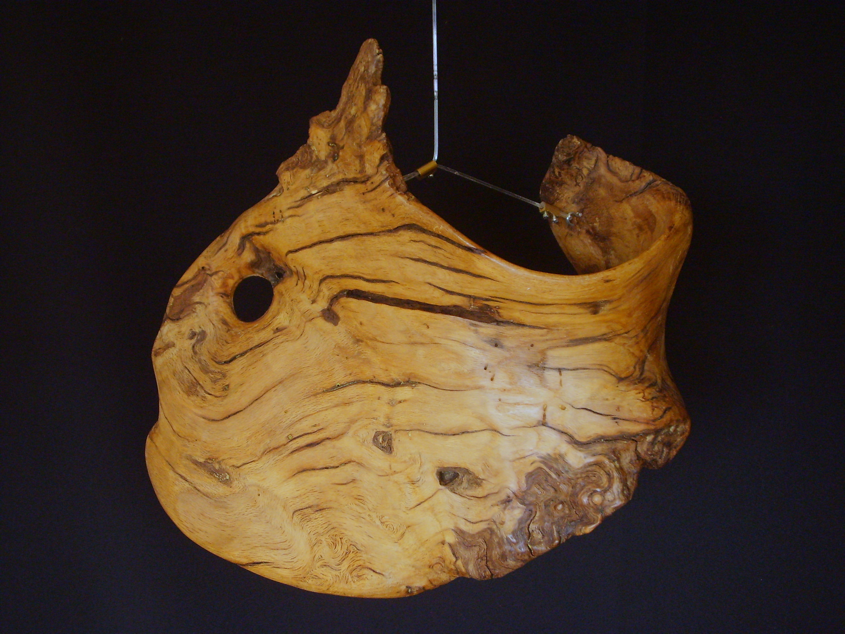 Vis uit een oude eikenstobbe. Klik op bewegend figuurtje rechts boven voor een ruimtelijk beeld.