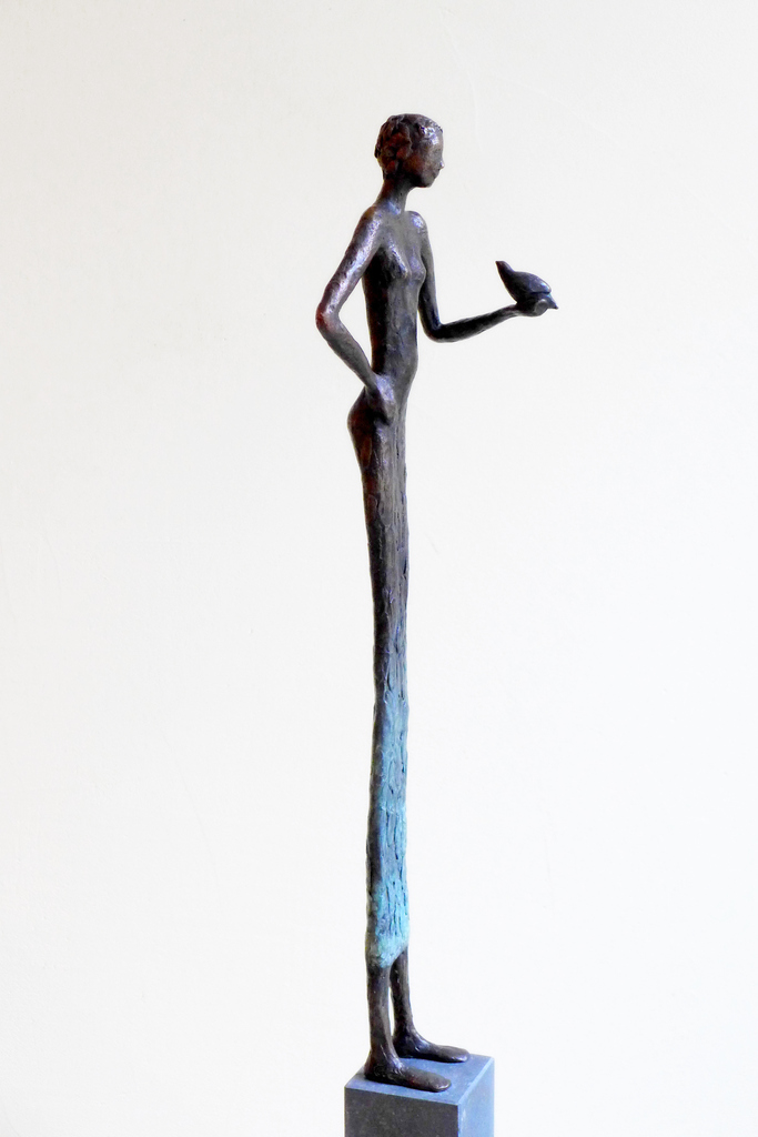 Vogel Brons Vrouw Beeld Opdracht Sculptuur Beeldje Bronzen