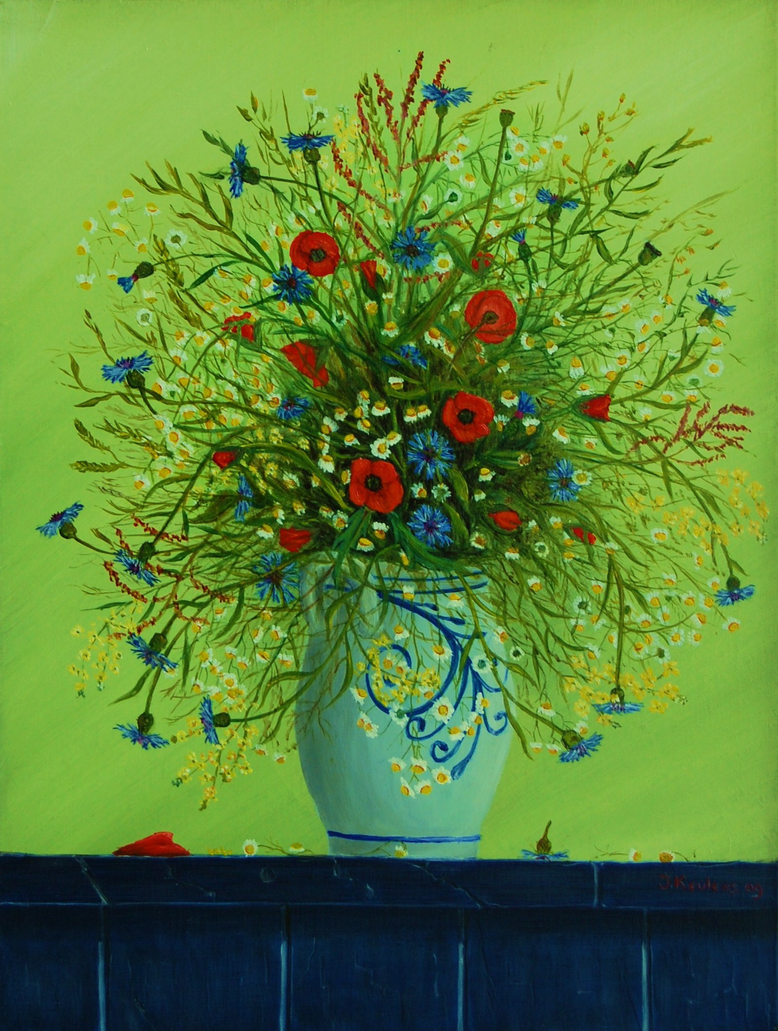 Een Veldboeket in een Keulse antieke pot.