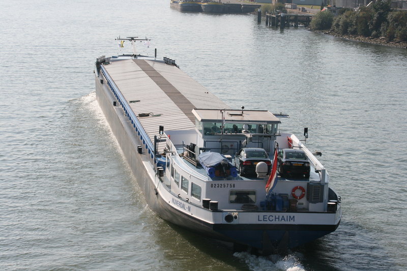 Vrachtschip over de rivier de Merwede