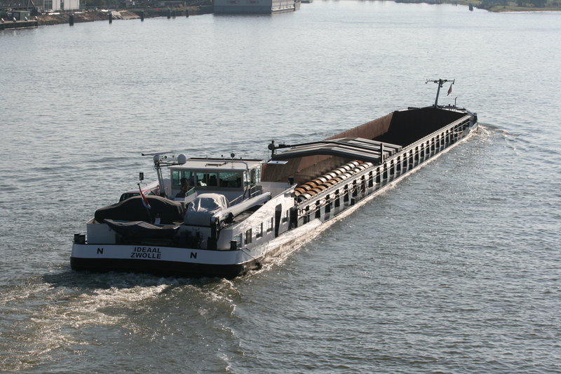 vrachtschip over de rivier de Merwede