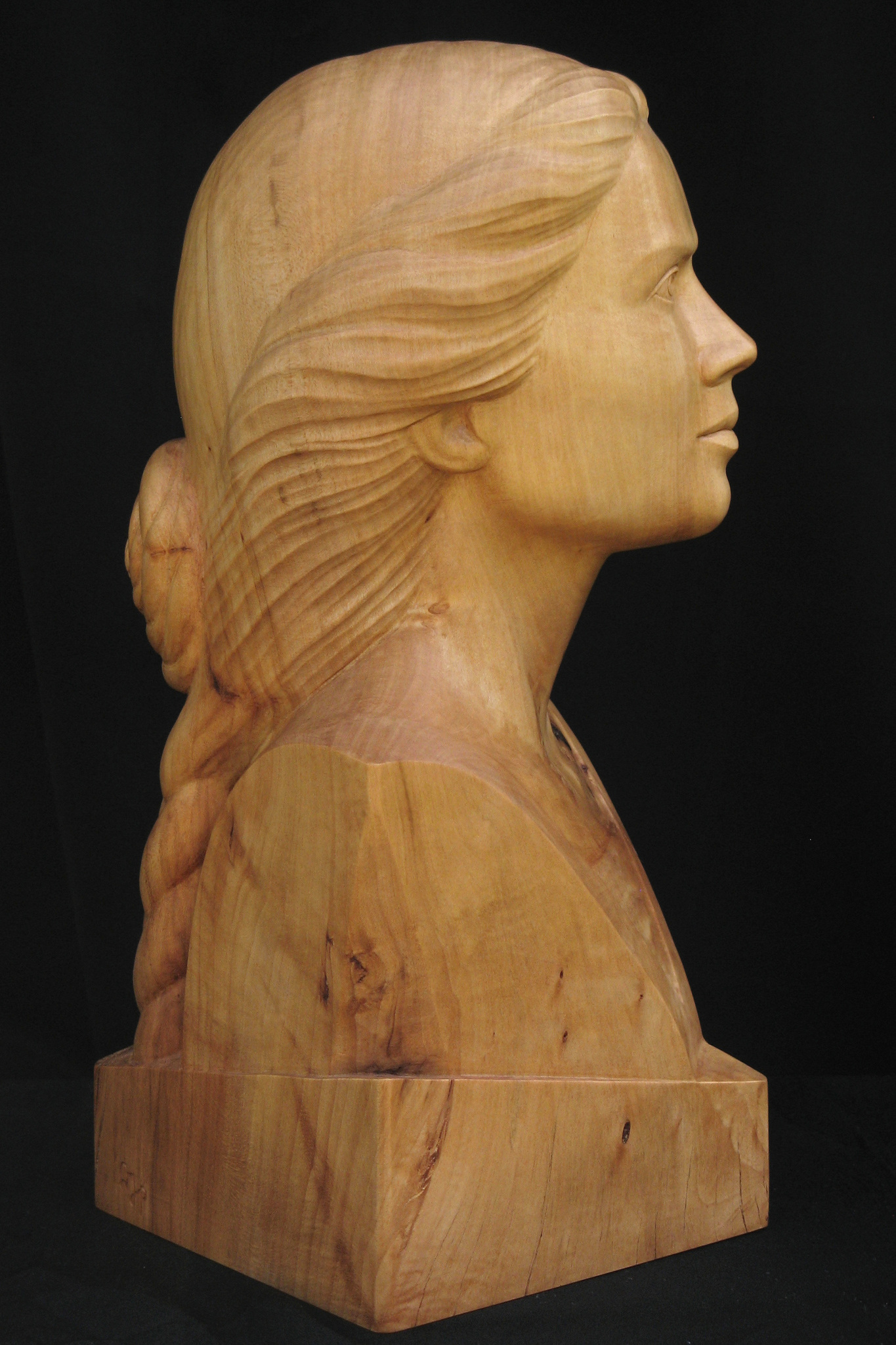 Figuratief Vrouw Portret Hout Art Beeld Kop Kunst Portrait Mens Female Realisme Houten Sculpture Menselijk Human Wooden Realistic Wood Houtkunst