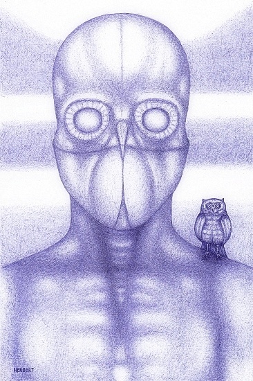 Ballpoint tekeningen op aquarel papier. Ontstaan door acuut potlood gemis. Sindsdien alleen nog ballpoint .