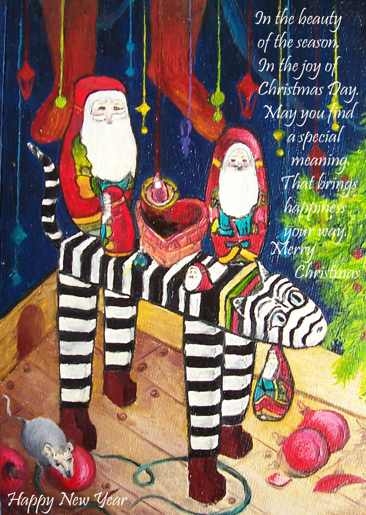 Reproductie Kunstkaart Kerstkaart met tekst Poes Muis Matroesjka 3.95 inclusief envelop en verzendkosten
