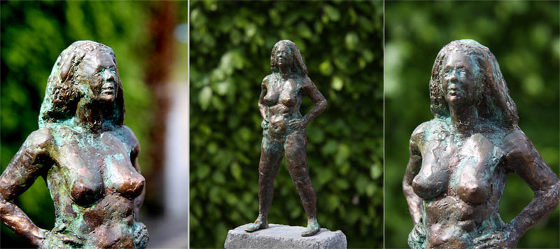 Vrouwenfiguur, geboetseerd in was en afgegoten in brons (cire perdue).