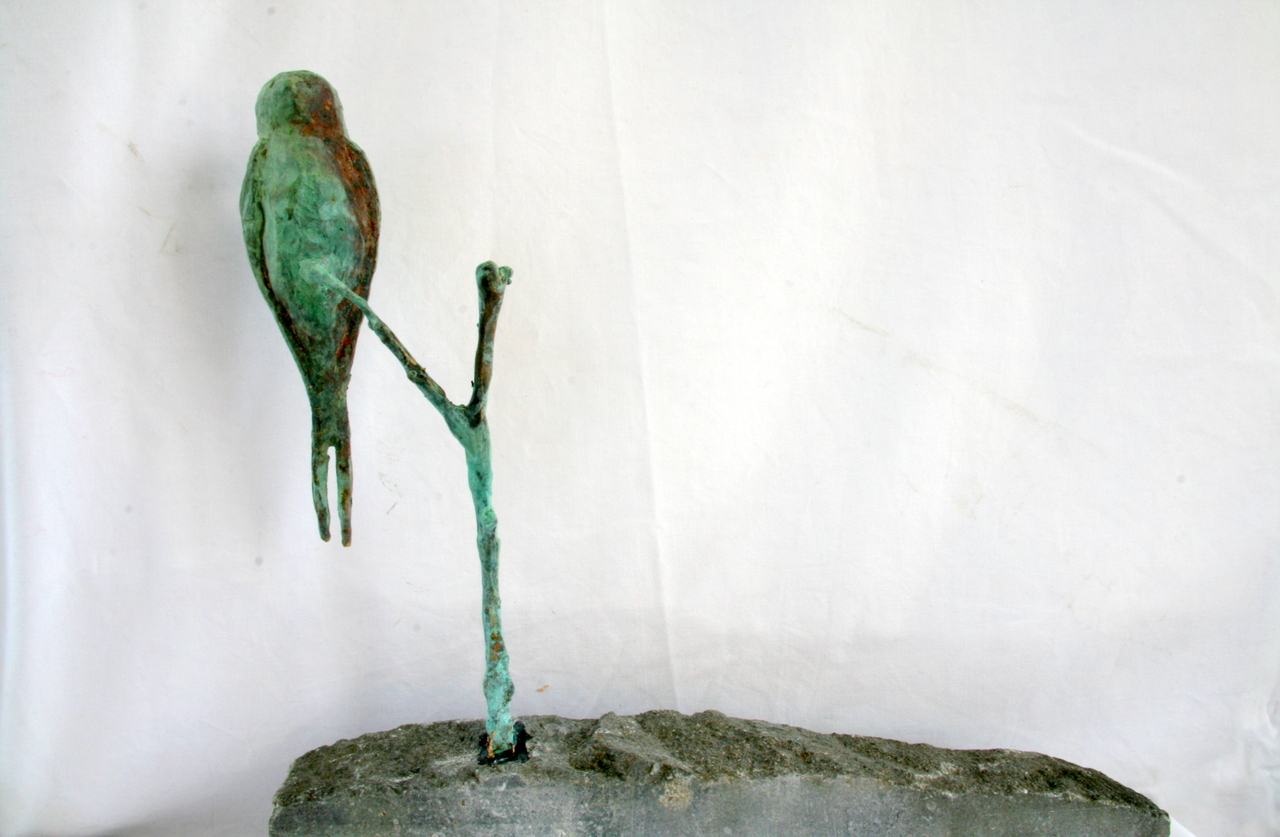Vogel op een tak van brons geplaats op een stenen sokkel