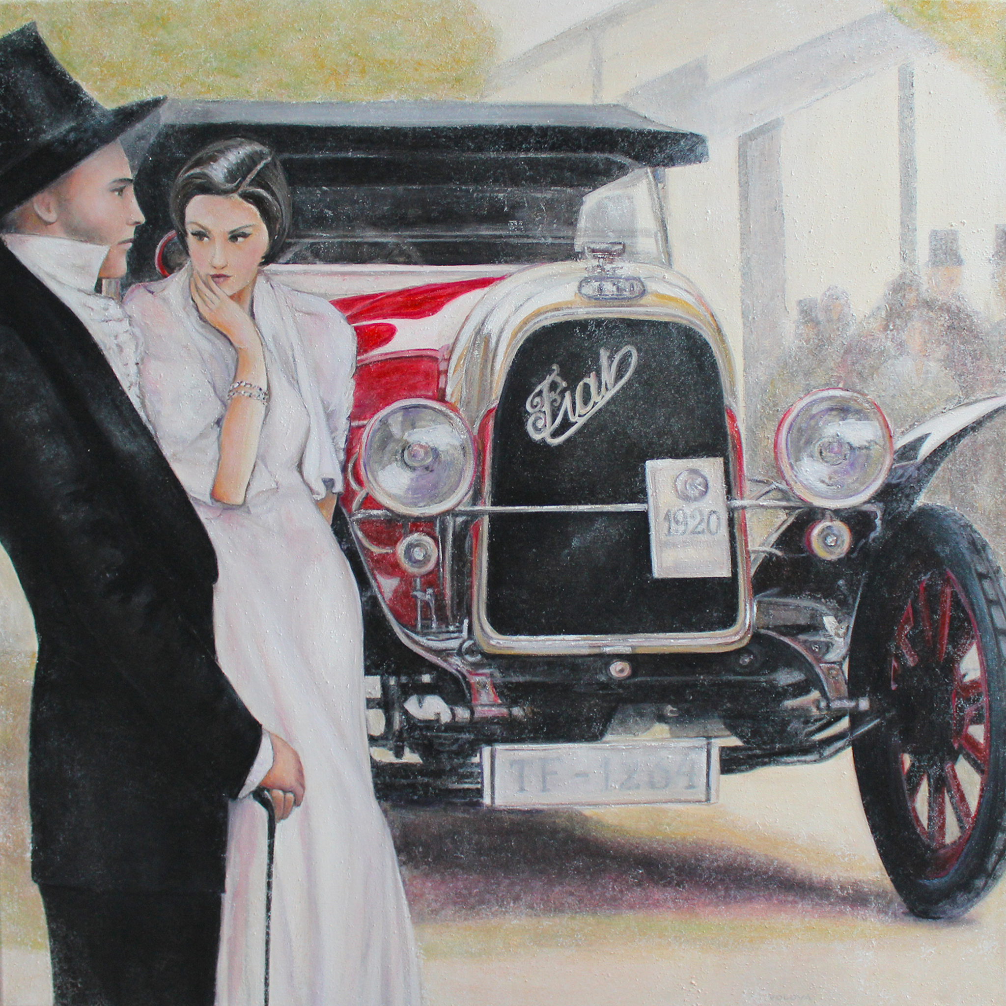Wit Rood Acryl Realistisch Auto Car People Retro