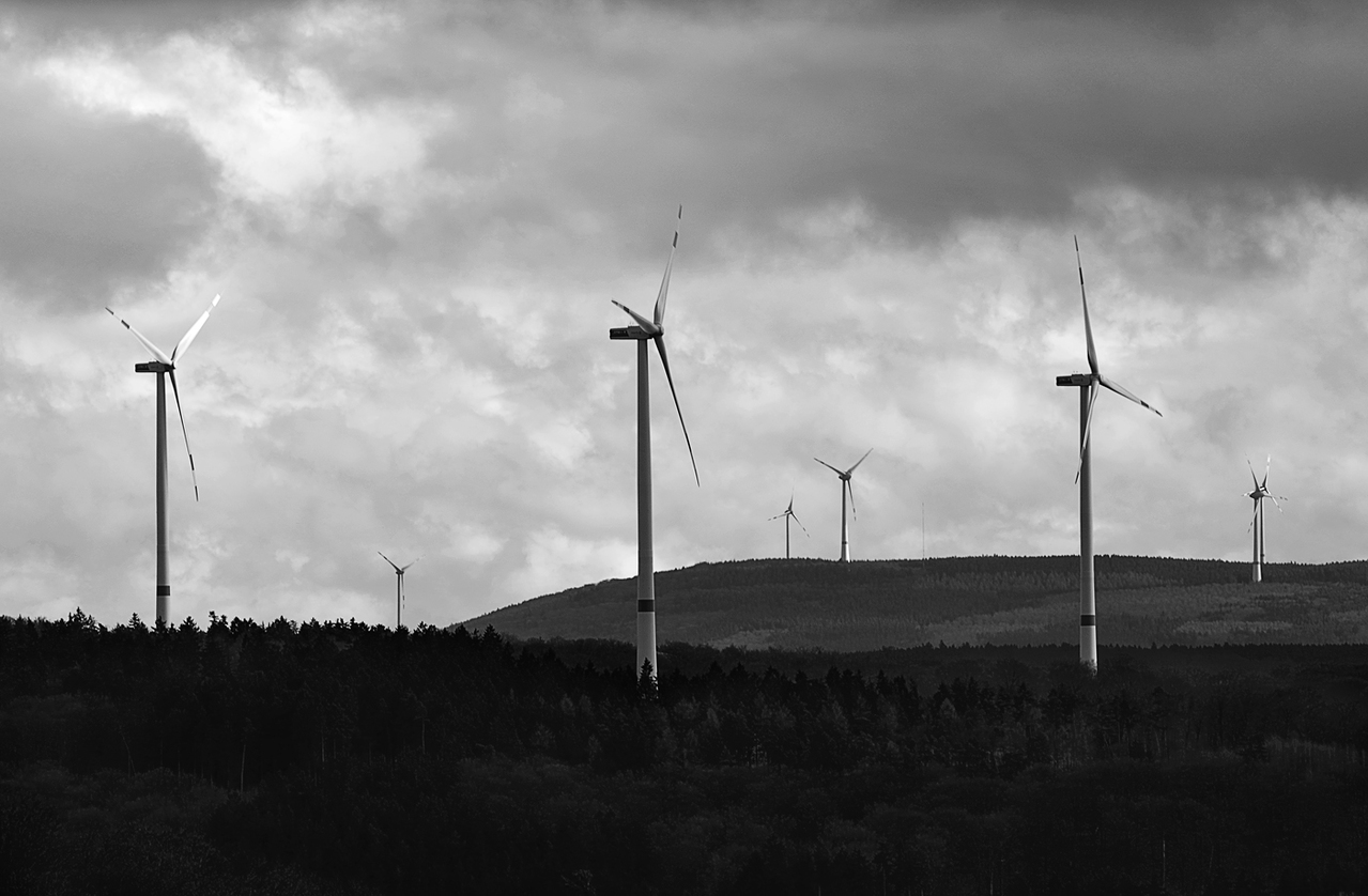 Wit Zwart Wolken Digitaal Fotografie Licht Bos Heuvels Windmolens Duitsland Dreigend Riegenroth