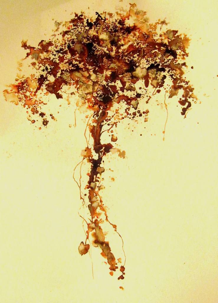 wijn geschilderd met o.a. wijn. Ingelijst met passe partout