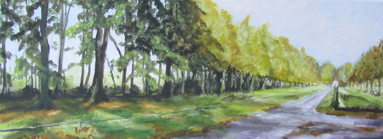 het 6e schilderij uit de serie "oprijlaan". Dit is het middelste schilderij. Vanaf dit punt ga ik aan de andere kant van de oprijlaan terug naar de ingang.