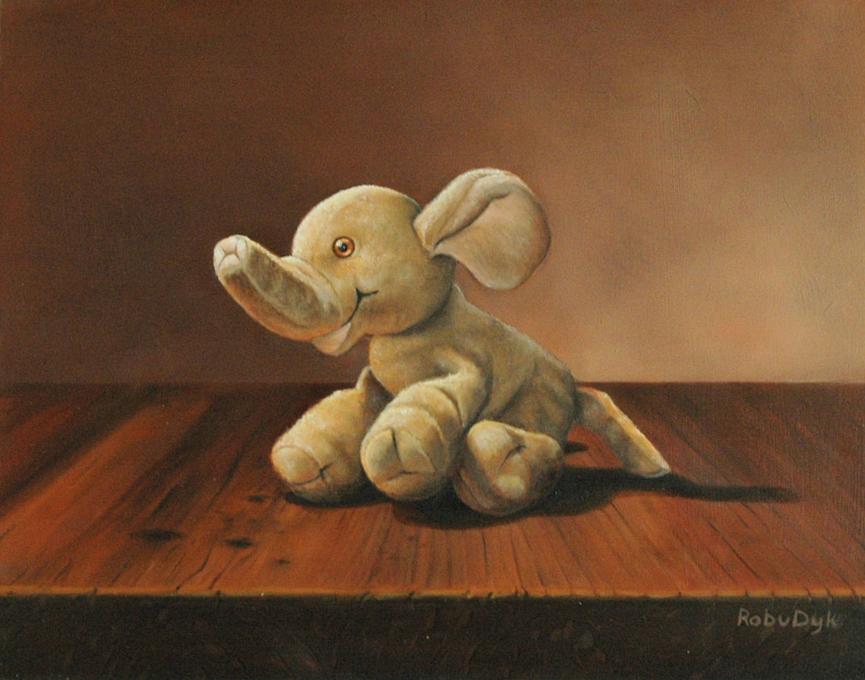 Speelgoed Olieverf Paneel Stilleven Teddybeer Knuffel Oliefant Knuffeldier